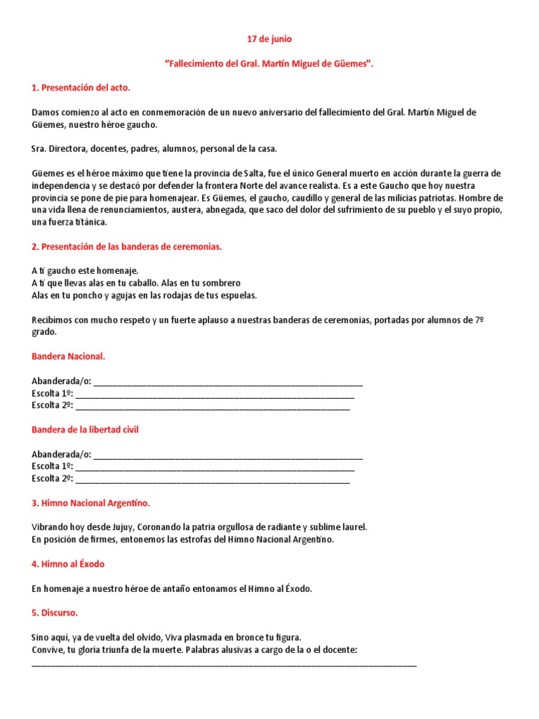 Damos comienzo al acto en conmemoración de un nuevo aniversario del fallecimiento del Gral. Martín Miguel de