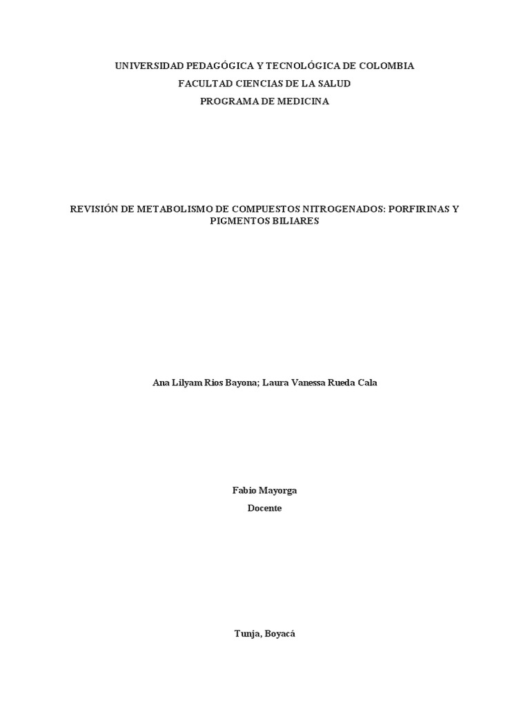 REVISIÓN DE METABOLISMO DE COMPUESTOS NITROGENADOS: PORFIRINAS Y