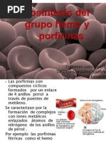 El hem es un ejemplo de la unión de porfirina y hierro ya que se sintetiza a partir de estos, el grupo