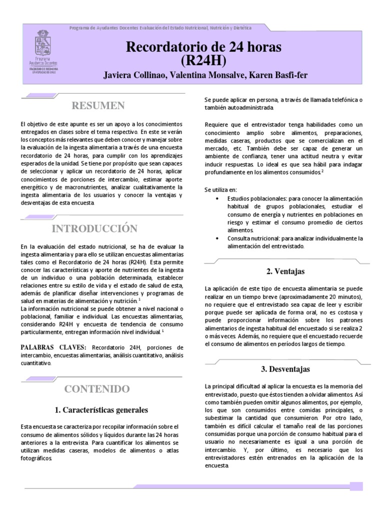 de seleccionar y aplicar un recordatorio de 24 horas, aplicar profundamente en los alimentos consumidos.2