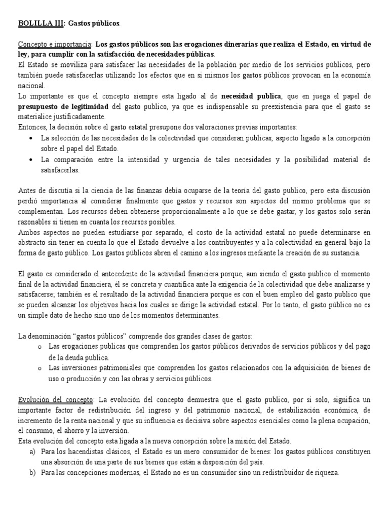Concepto e importancia: Los gastos públicos son las erogaciones dinerarias que realiza el Estado, en virtud de