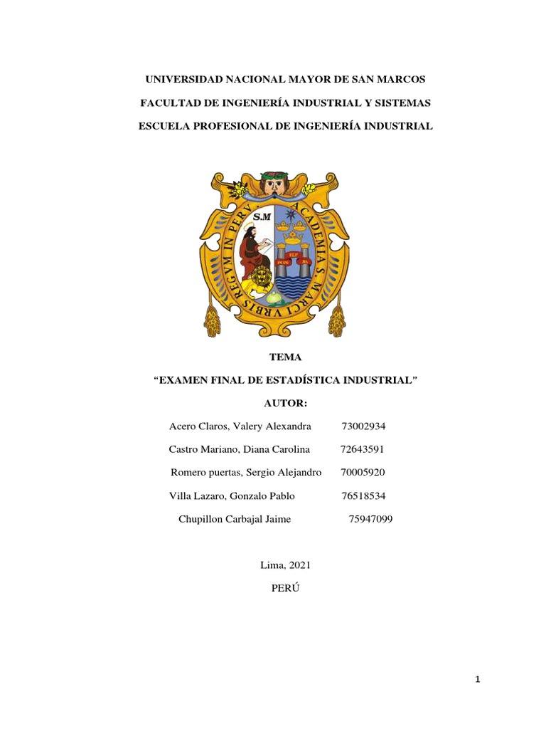 “EXAMEN FINAL DE ESTADÍSTICA INDUSTRIAL”