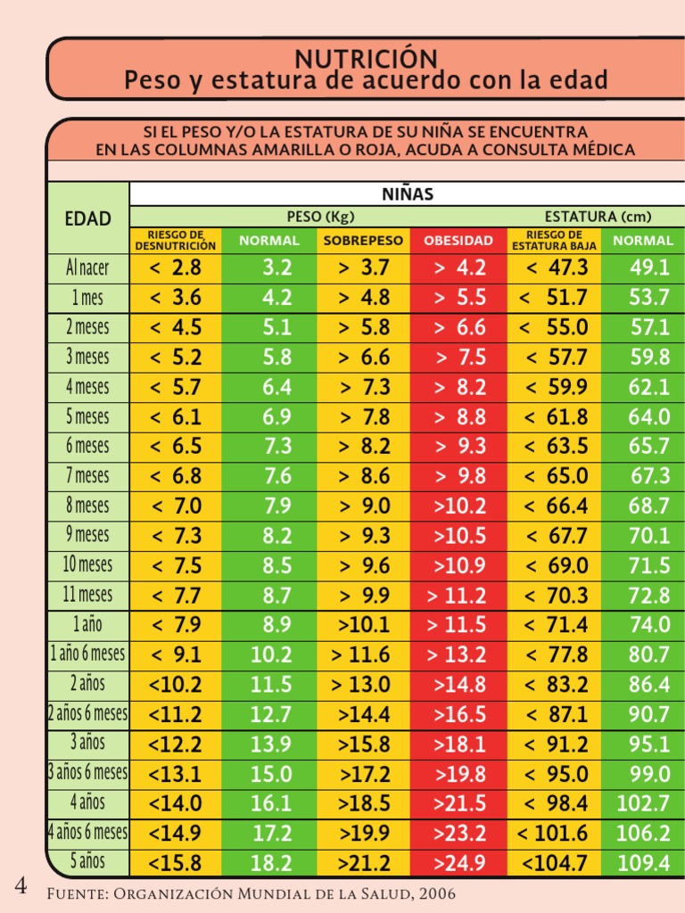 SI EL PESO Y/O LA ESTATURA DE SU NIÑA SE ENCUENTRA