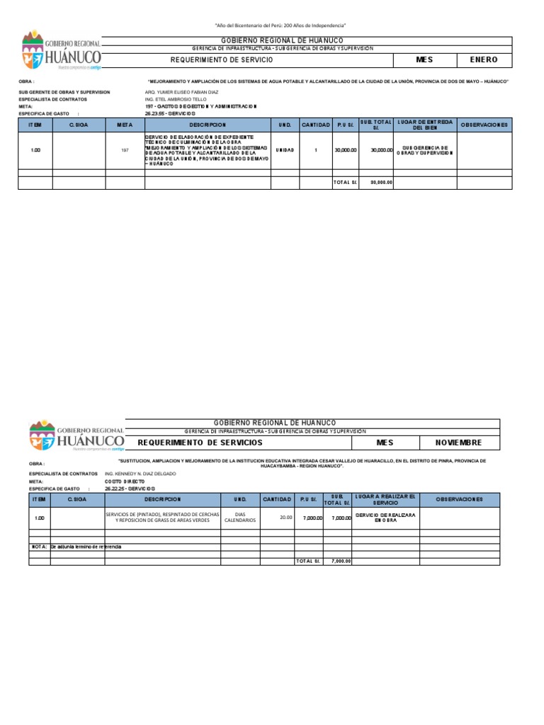 REQUERIMIENTO DE SERVICIOS MES NOVIEMBRE
