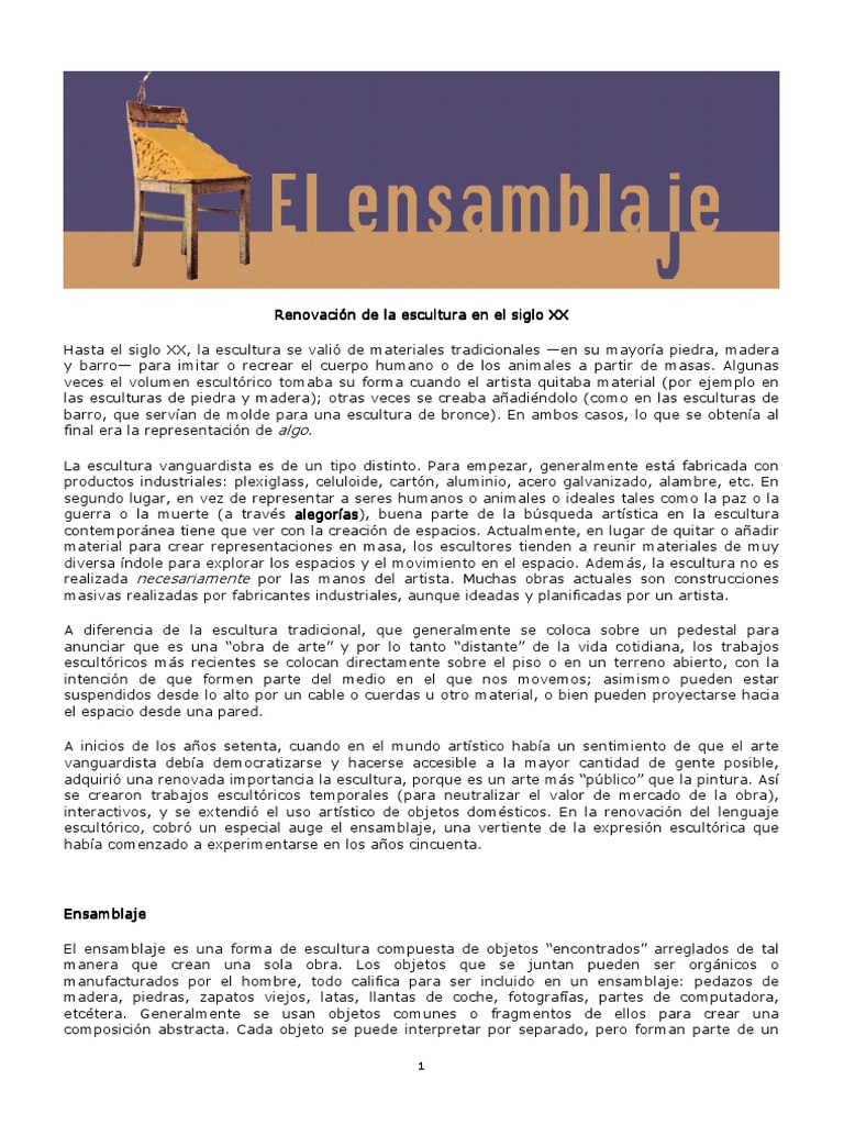 El ensamblaje es una forma de escultura compuesta de objetos “encontrados” arreglados de tal