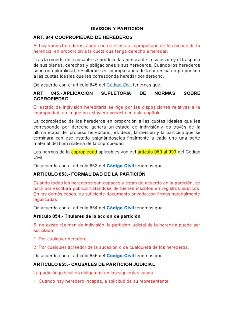 ART. 844 COOPROPIEDAD DE HEREDEROS