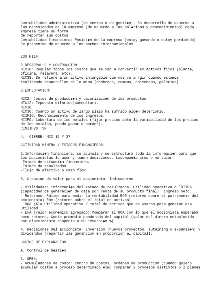 ACTIVIDAD MINERA Y ESTADOS FINANCIEROS: