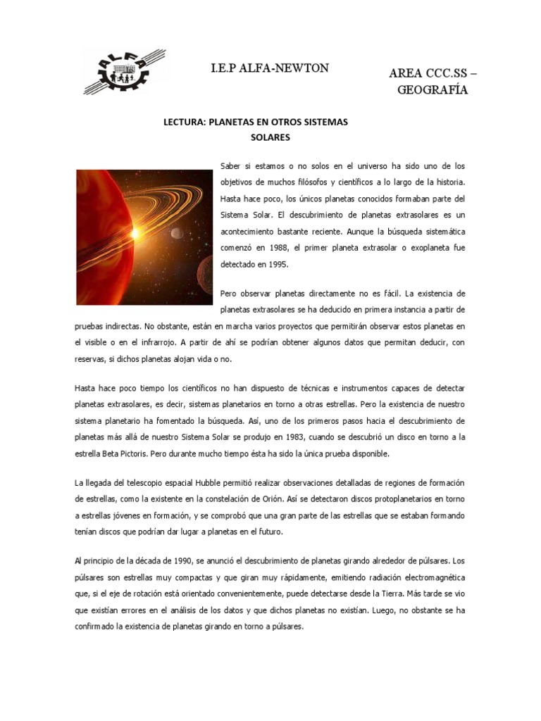 LECTURA: PLANETAS EN OTROS SISTEMAS