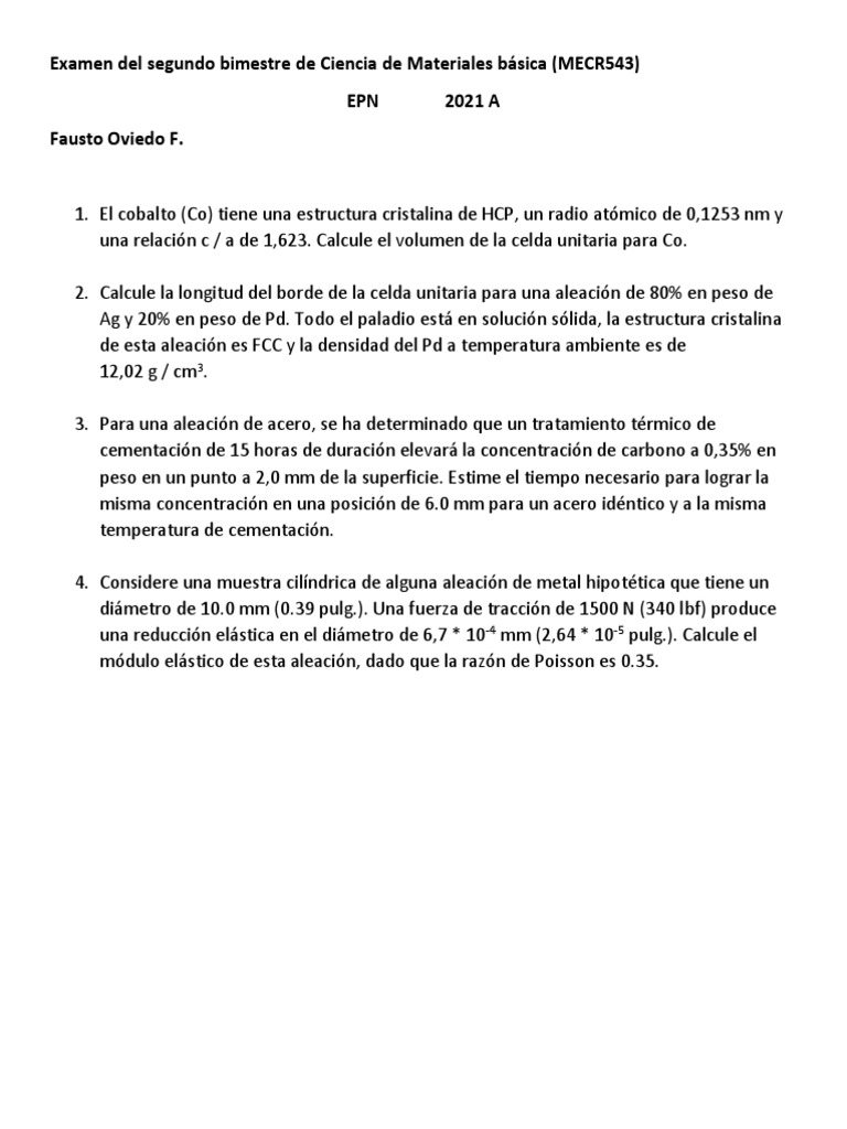 Examen del segundo bimestre de Ciencia de Materiales básica (MECR543)
