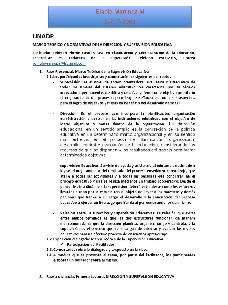 1. Fase Presencial: Marco Teórico de la Supervisión Educativa