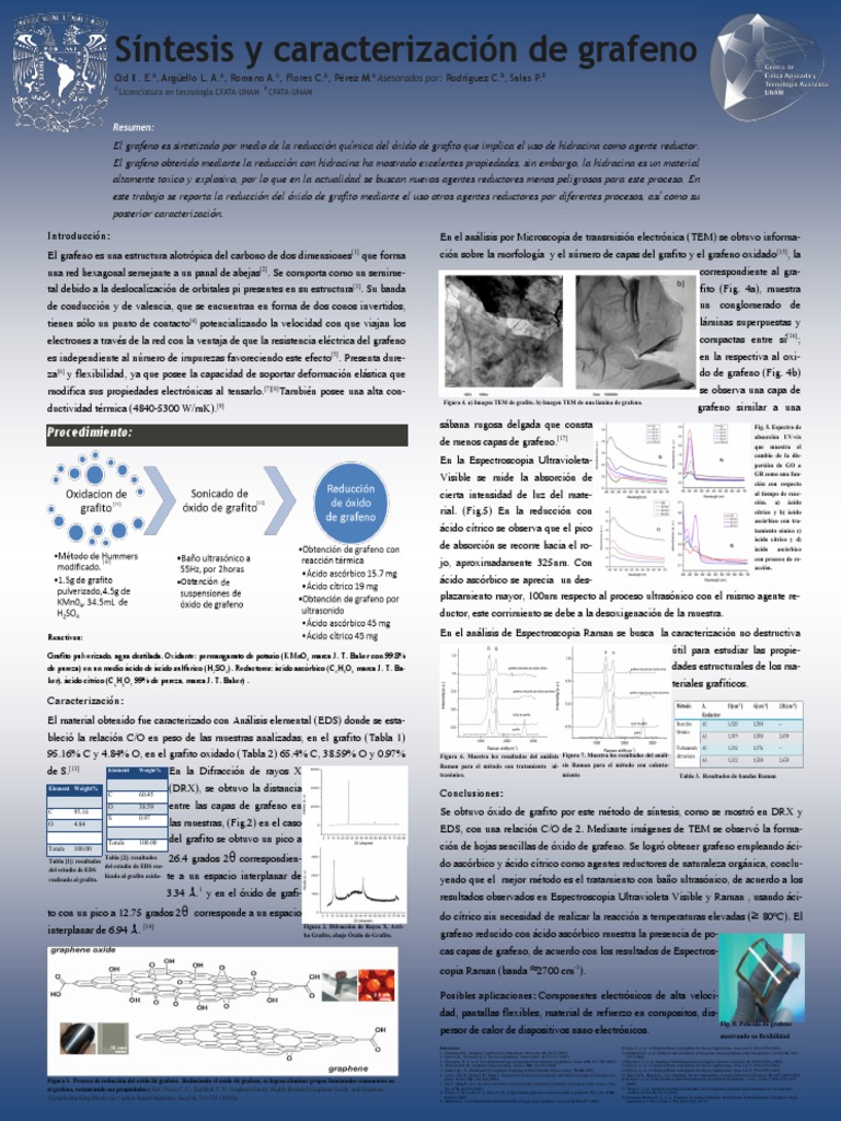 El grafeno es sintetizado por medio de la reducción química del óxido de grafito que implica el uso de hidracina como agente reductor.