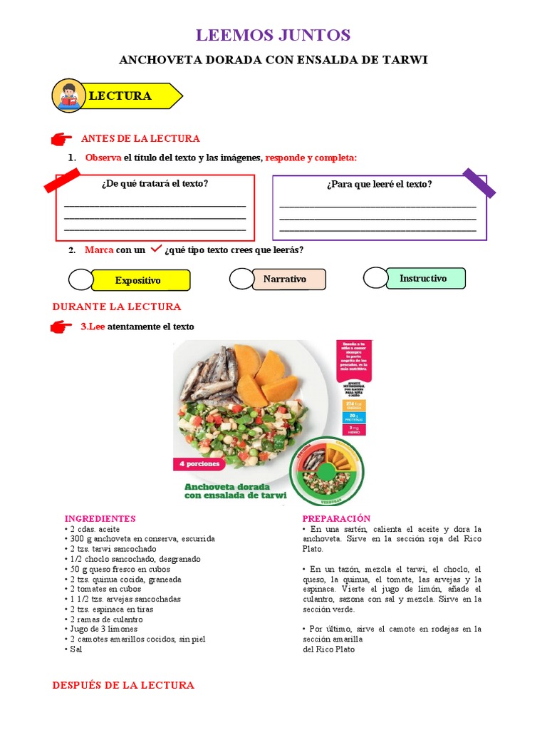 c) De cómo preparar anchoveta dorada con ensalada de tarwi