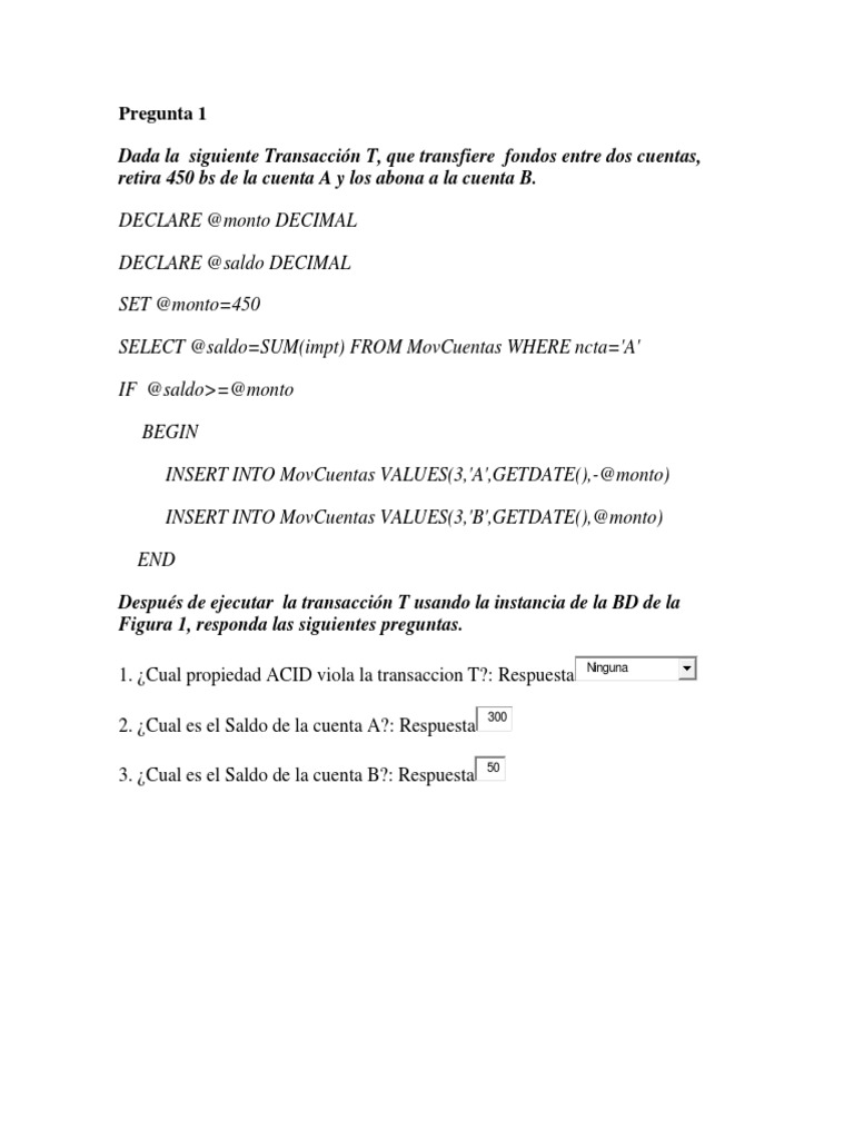 1. ¿Cual propiedad ACID viola la transaccion T?: Respuesta