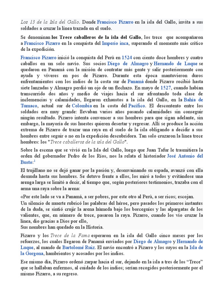 de conquista del Perú, dejó escrito que habían sido diez los que quedaron con Pizarro; 9el