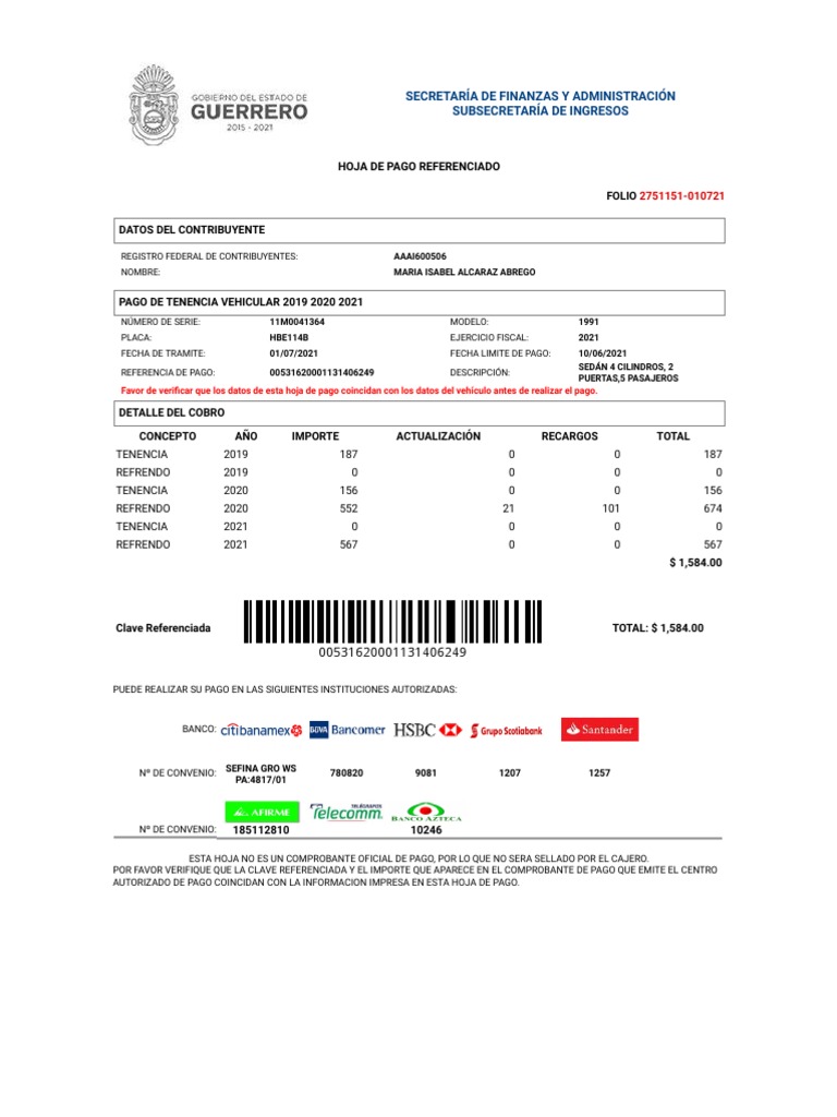 Estimado contribuyente si pagaste por Pago Referenciado tu tenencia 2021, deberás de acudir a la oficina rentística de tu preferencia del Estado para