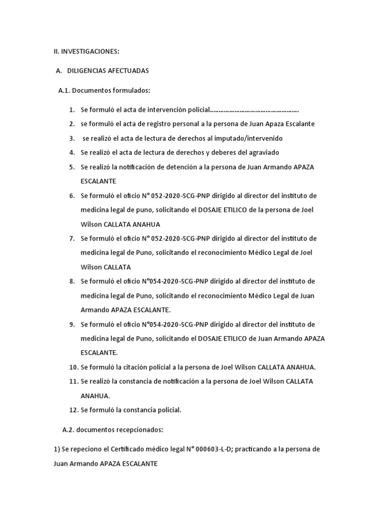 investigación de delitos y faltas de la comisaria PNP Puno, el acta de intervención