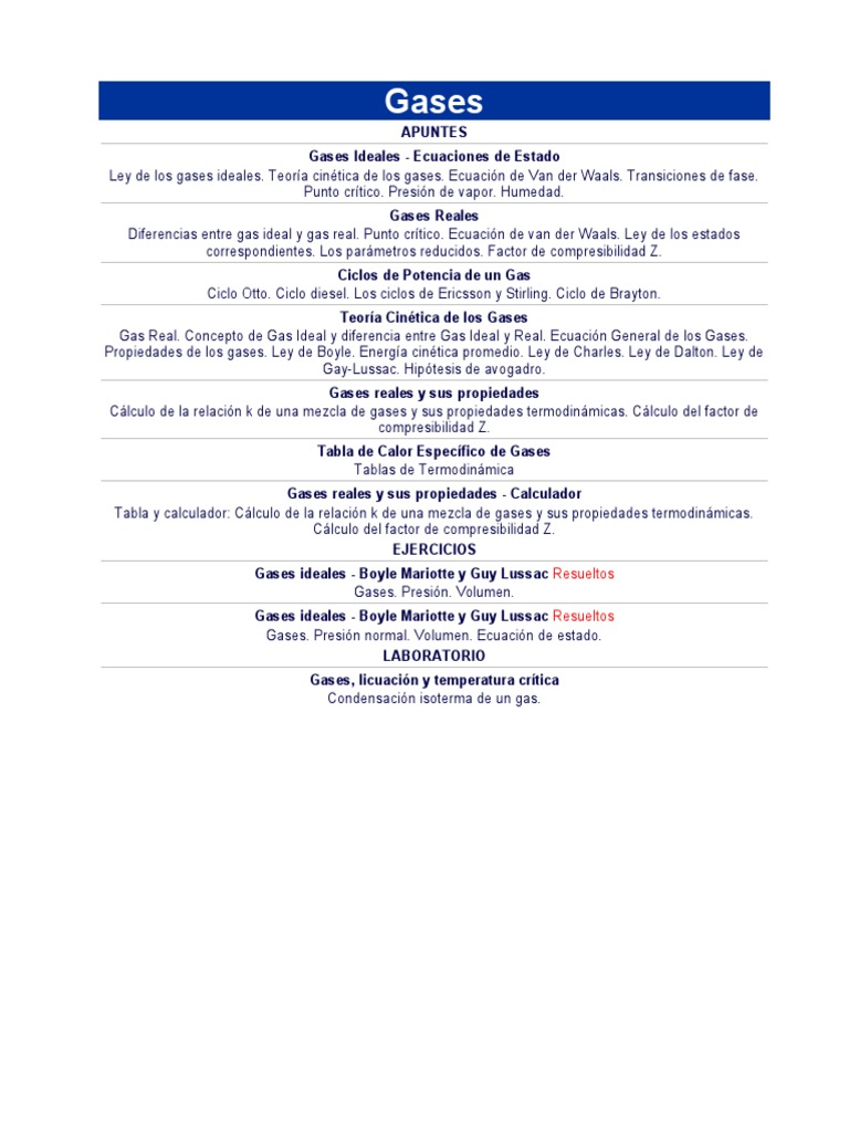 Tabla y calculador: Cálculo de la relación k de una mezcla de gases y sus propiedades termodinámicas.