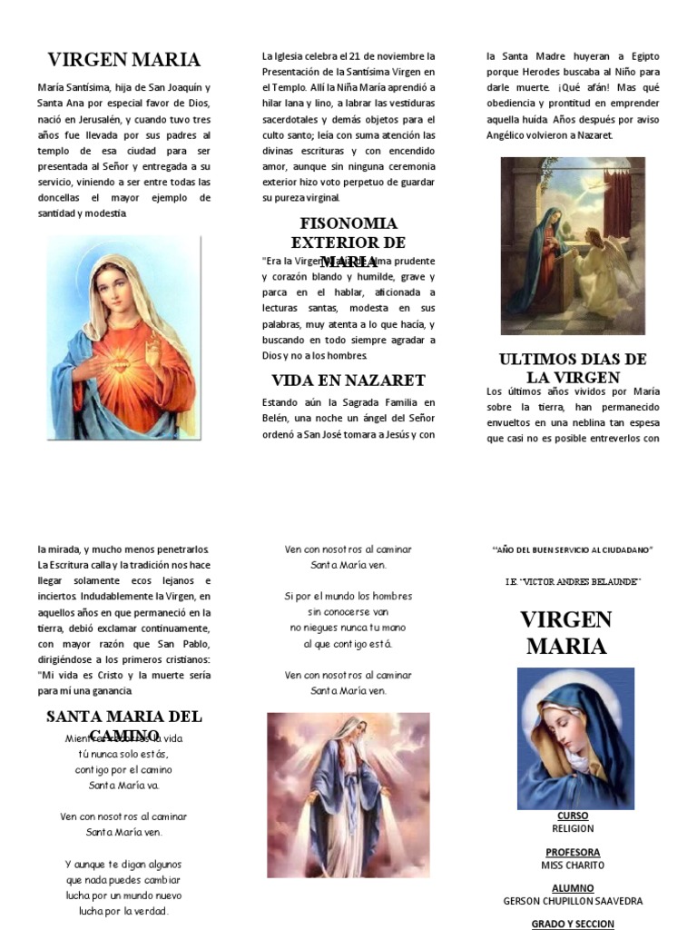 VIRGEN MARIA La Iglesia celebra el 21 de noviembre la