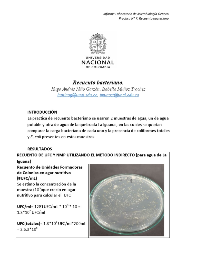 RECUENTO DE UFC Y NMP UTILIZANDO EL METODO INDIRECTO (para agua de La