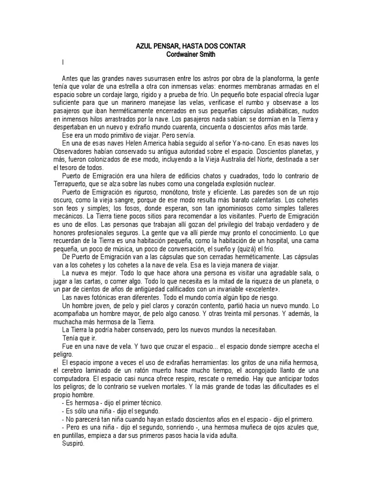 Piensa azul, cuenta basta dos, por nombrar tres.» Le dije que eso me parecía curioso, porque ninguno de