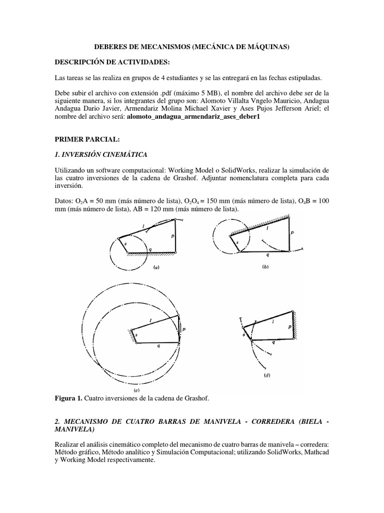 DEBERES DE MECANISMOS (MECÁNICA DE MÁQUINAS)