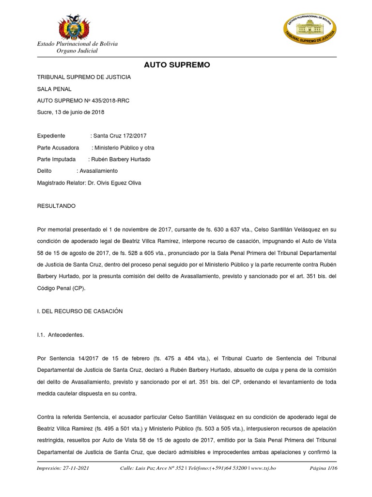 Impresión: 27-11-2021 Calle: Luis Paz Arce Nº 352 | Teléfono:(+591)64 53200 | www.tsj.bo Página 1/16