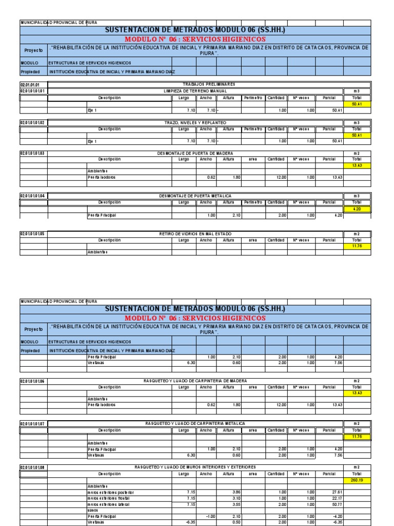 SUSTENTACION DE METRADOS MODULO 06 (SS.HH.)