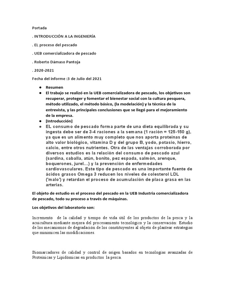 El objeto de estudio es el proceso del pescado en la UEB Industria comercializadora
