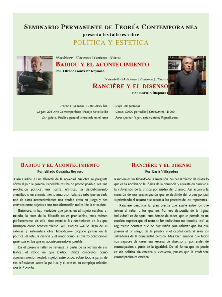 LA METAPOLÍTICA | 10 de marzo EL DESPLAZAMIENTO DE LA CRÍTICA RANCIÈRIANA | 14 de abril