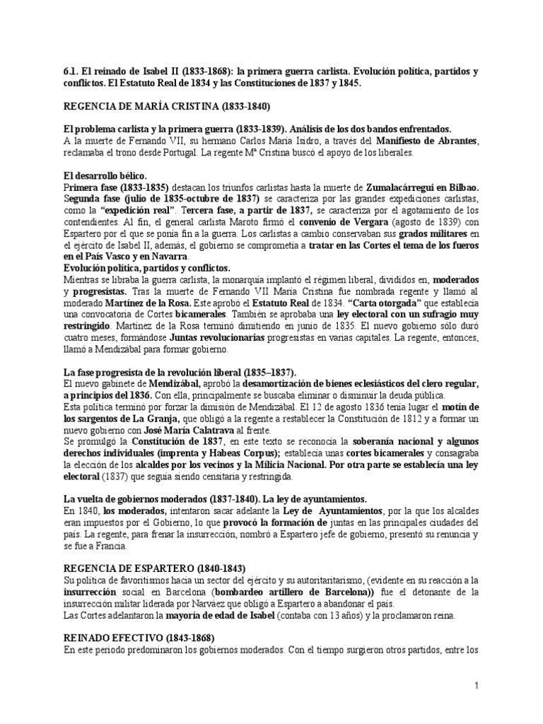 6.1. El reinado de Isabel II (1833-1868): la primera guerra carlista.