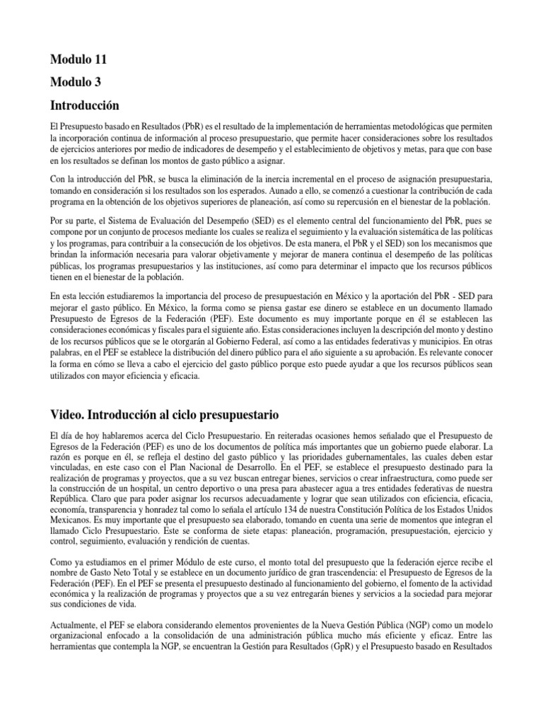 En esta lección estudiaremos la importancia del proceso de presupuestación en México y la aportación del PbR - SED para