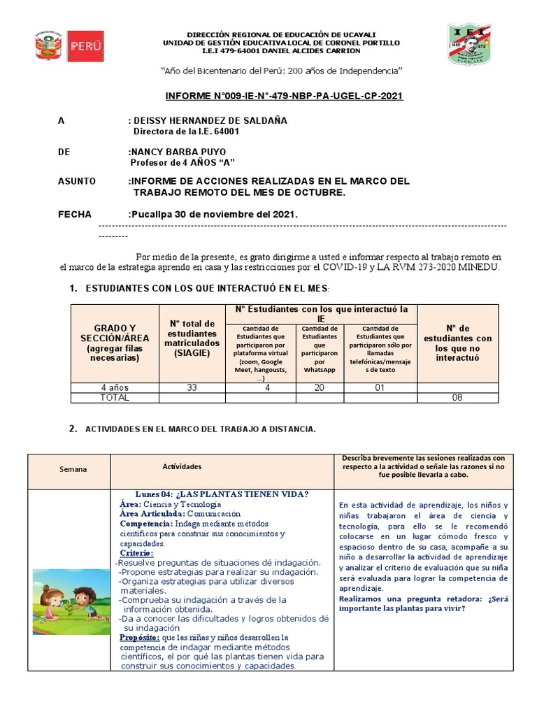 Informe de Actividades Educativas Remotas