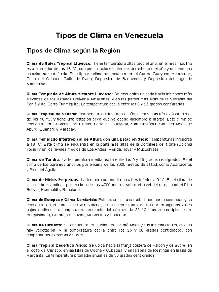 En este trabajo se trata sobre el tema del clima en Venezuela, sus factores, sus