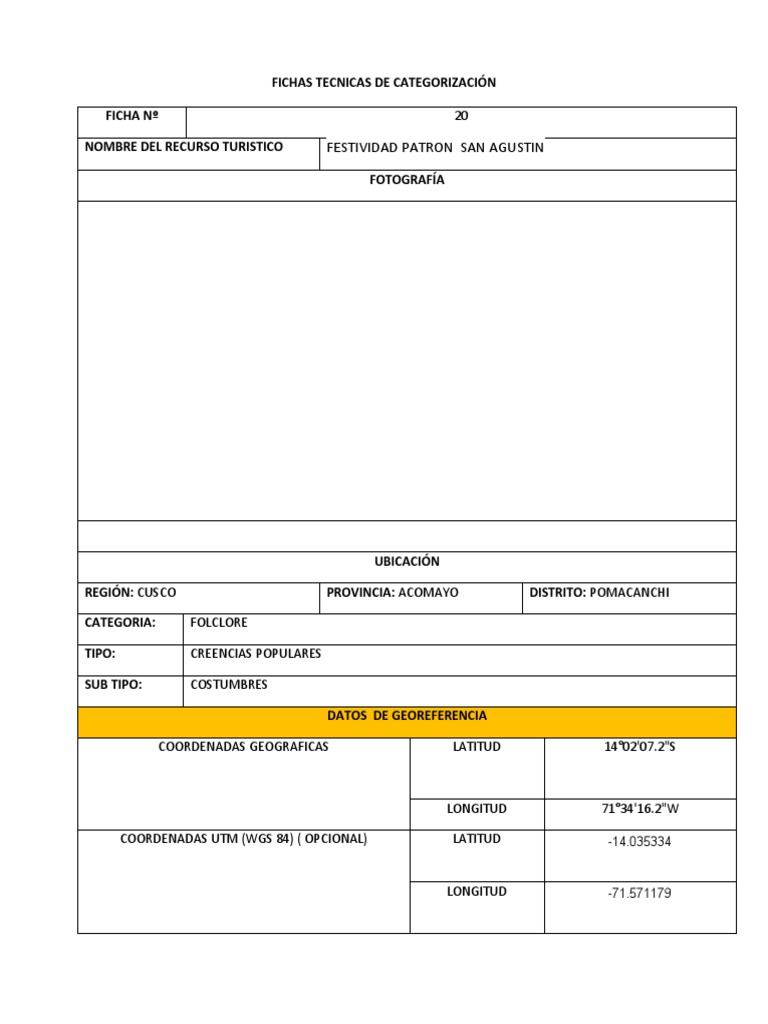 COORDENADAS UTM (WGS 84) ( OPCIONAL) LATITUD -14.035334