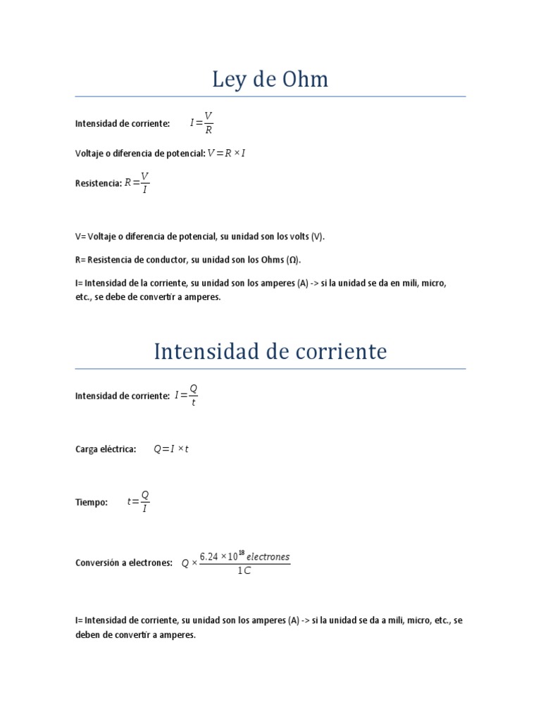 I= Intensidad de la corriente, su unidad son los amperes (A) -> si la unidad se da en mili, micro,