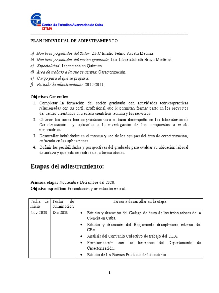 PLAN INDIVIDUAL DE ADIESTRAMIENTO