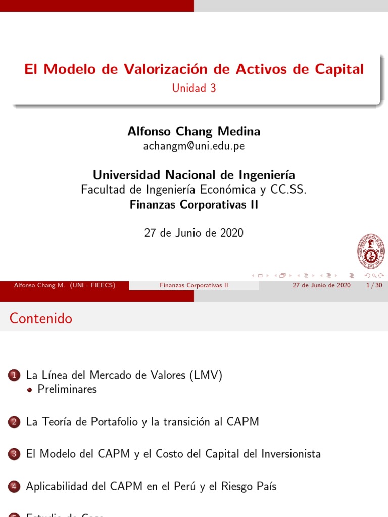 Alfonso Chang M. (UNI - FIEECS) Finanzas Corporativas II 27 de Junio de 2020 1 / 30