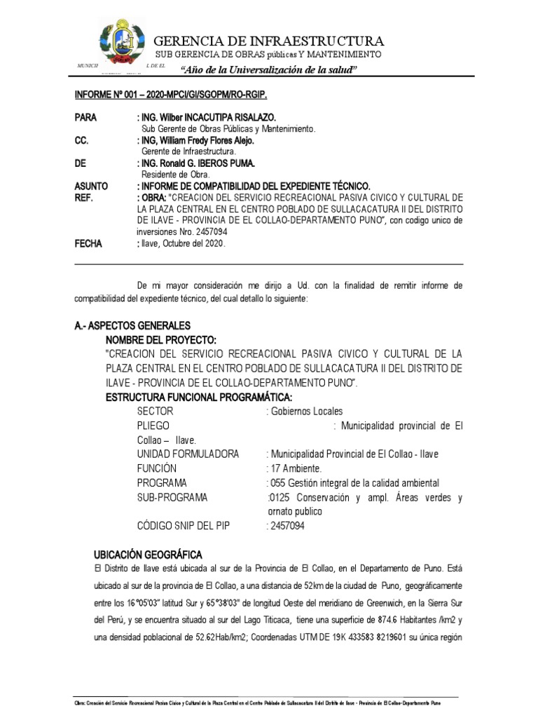 Informe de Compatibilidad de Proyecto Plaza Sullacacatura