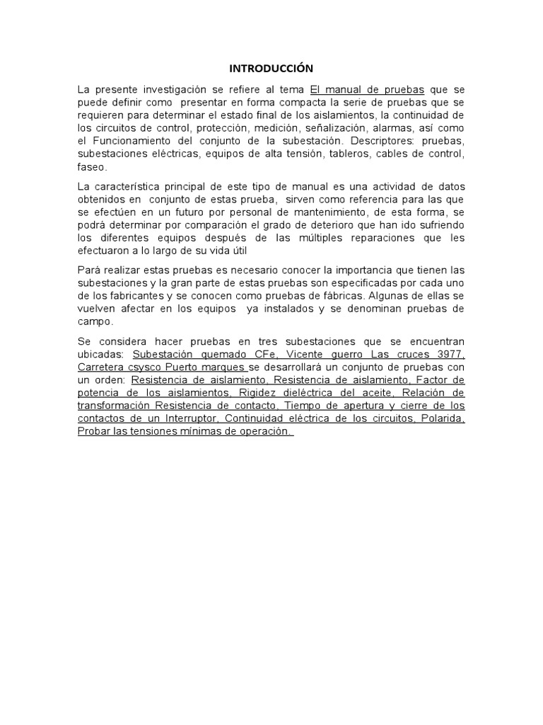 subestaciones y la gran parte de estas pruebas son especificadas por cada uno