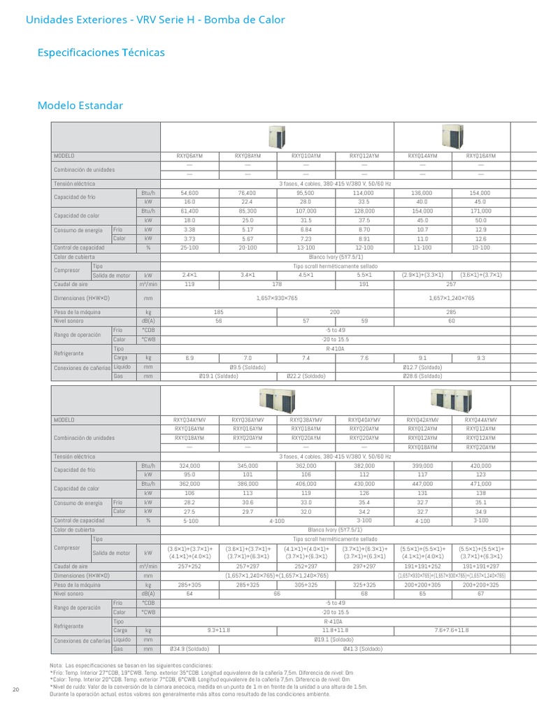 Unidades Exteriores - VRV Serie H - Bomba de Calor