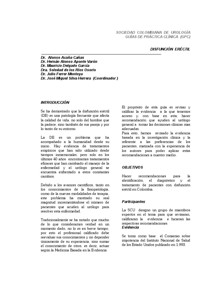los conocimientos de la fisiopatología, eréctil en Colombia.