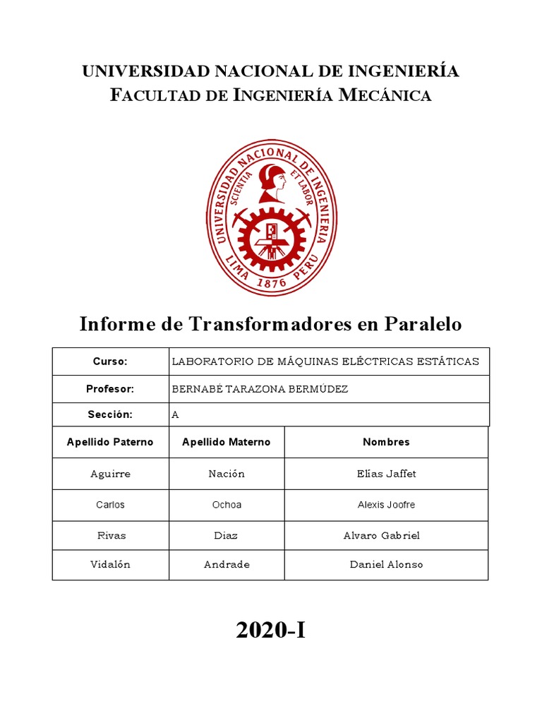 Curso: LABORATORIO DE MÁQUINAS ELÉCTRICAS ESTÁTICAS