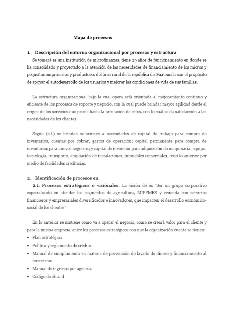Con la información que fue descrita sobre los procesos estratégicos, operativos y de apoyo a