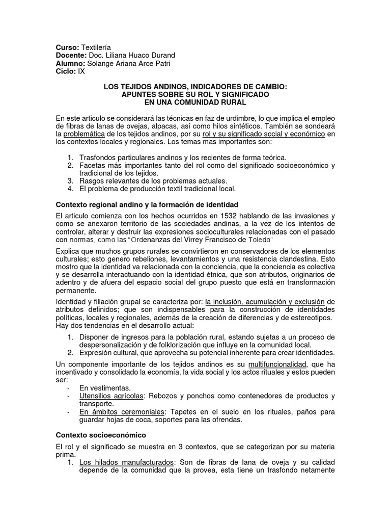 la problemática de los tejidos andinos, por su rol y su significado social y económico en