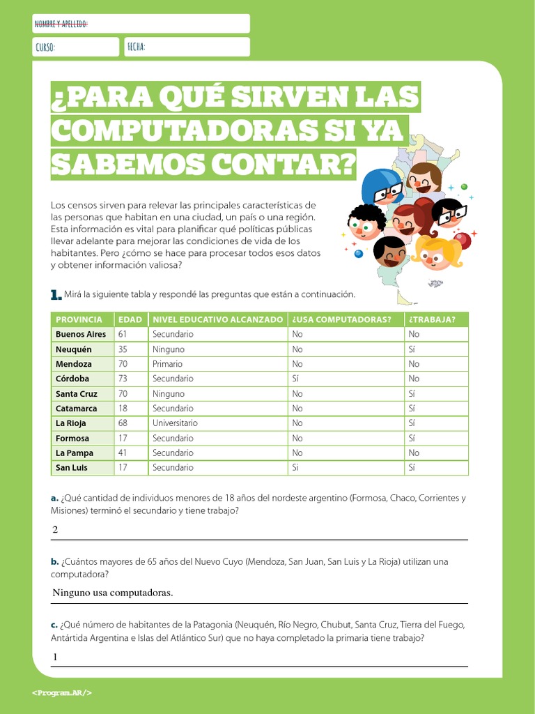 1. Mirá la siguiente tabla y respondé las preguntas que están a continuación.