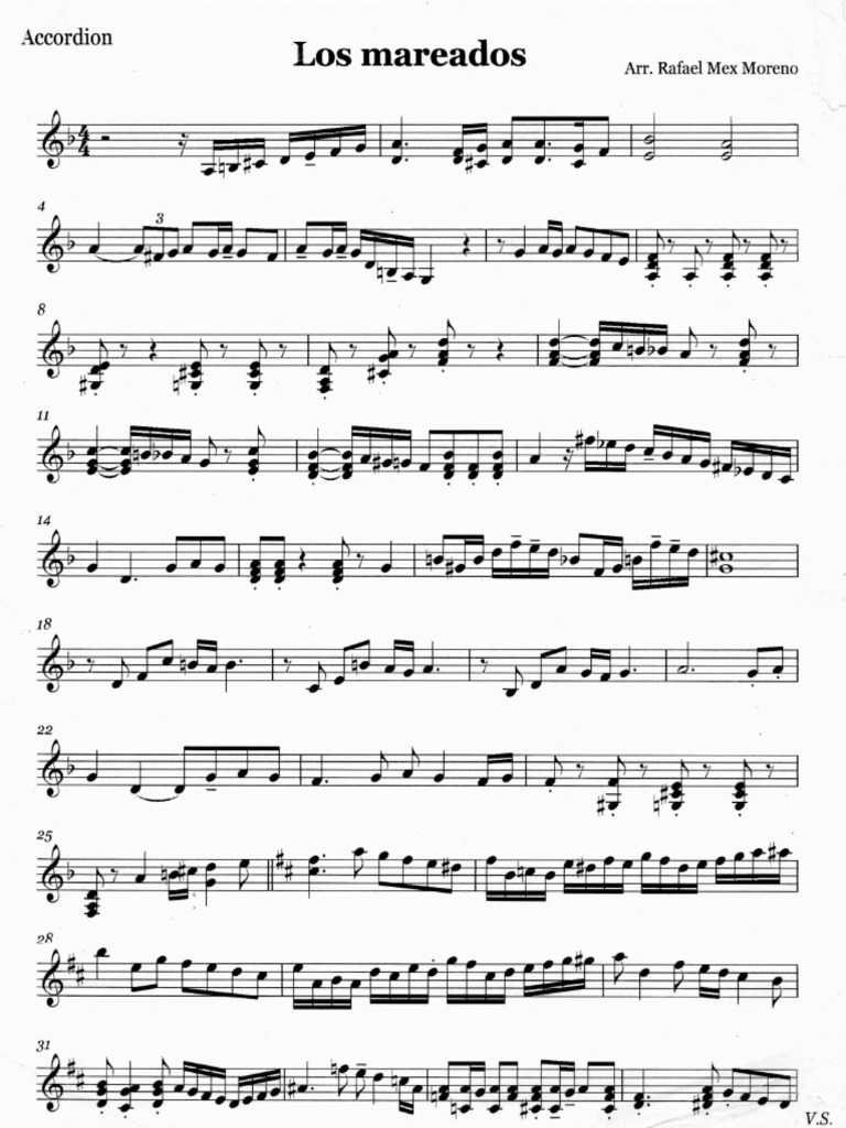 Arreglo para acordeón, incompleto, faltan los bajos