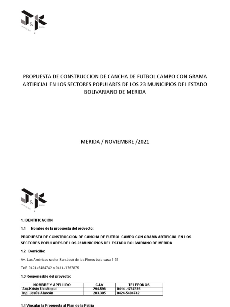 PROPUESTA DE CONSTRUCCION DE CANCHA DE FUTBOL CAMPO CON GRAMA