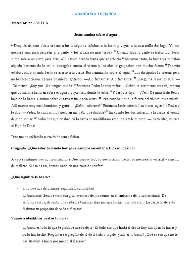 Mateo 14: 22 – 33 TLA