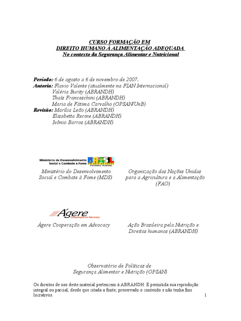 Direito Humano à Alimentação Adequada" elaborado pela Organização das Nações