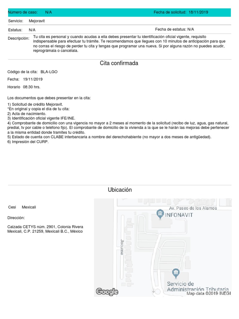 Número de caso: N/A Fecha de solicitud: 18/11/2019